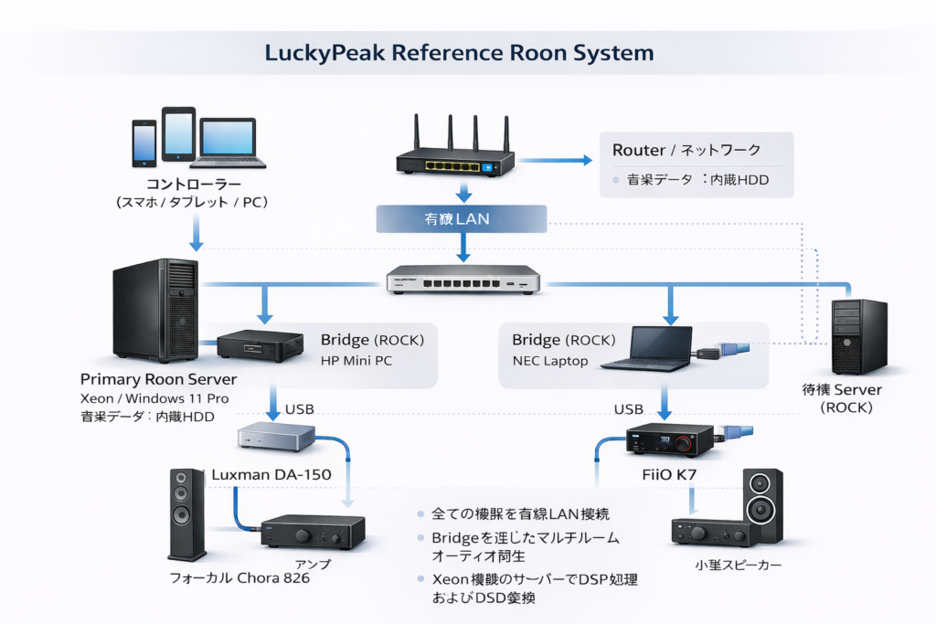 実際のRoon環境の例として、私のシステム構成を紹介します。
